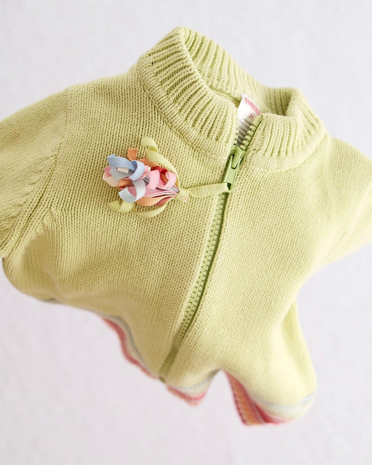 Vintage Gymboree Petite Fleur Green Zip-Up Knit Toddler Cardigan: 2T
