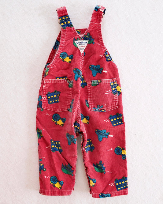 Vintage OshKosh B’gosh Red Corduroy Vehicle Print Overalls: 18m