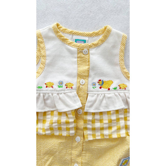 Vintage 90s or Y2K Little Me Chickens Seersucker Check Chickens Romper