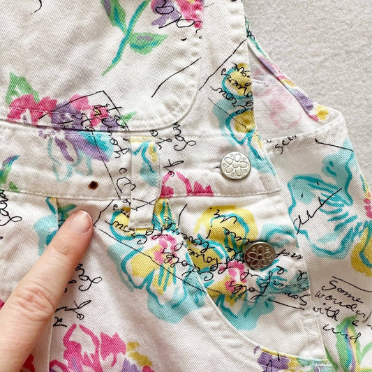 Vintage 90s Floral Vacation Print Kids Shortall Overalls