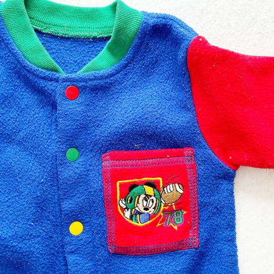 Vintage Baby Mickey Football Color Block Fleece Romper: 9m