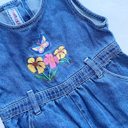 Vintage Denim Flower Embroidered Kids Jumpsuit