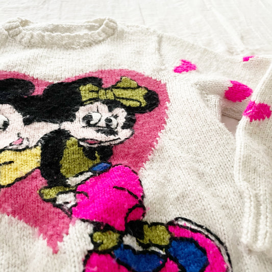 Vintage Handknit Mickey and Minnie Hearts Sweater