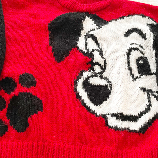 Vintage Handknit Red 101 Dalmatians Kids Sweater
