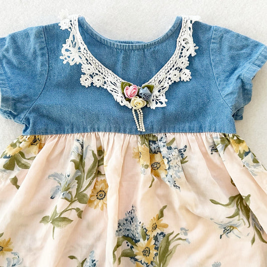 Vintage Memories by Jo Lene Chambray Floral Dress