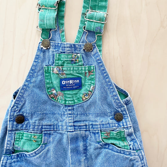 Vintage OshKosh Blue Wash Floral Accent Overalls