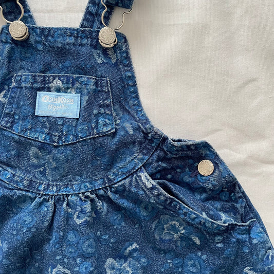 Vintage OshKosh Darker Wash Floral Print Overalls