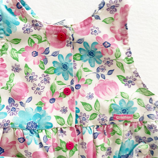 Vintage OshKosh Floral Woven Bow Back Bubble Romper