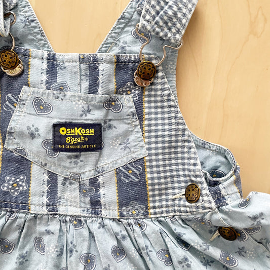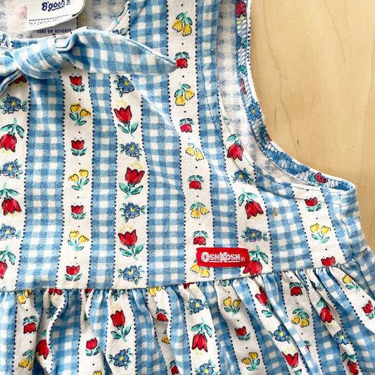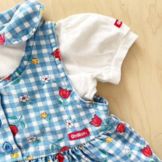 Vintage OshKosh Blue Floral Gingham Overall Skirtall