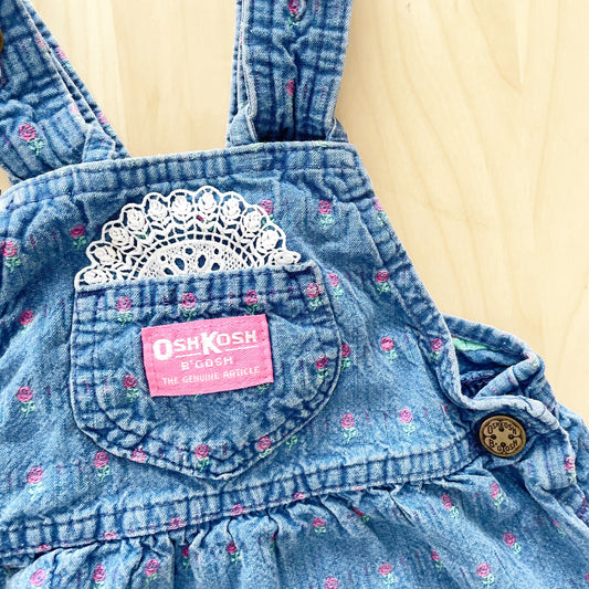 Vintage OshKosh Floral Woven Bow Back Skirtall