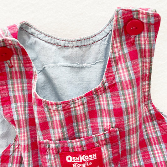 Vintage OshKosh Turquoise Plaid Kids Shortall Overalls