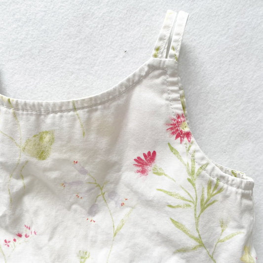Vintage OshKosh Floral Woven Pink Bow Back Overalls