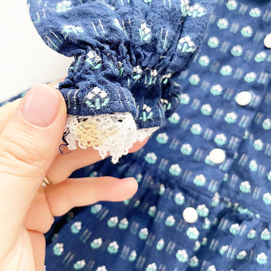 Vintage OshKosh Doily Collar Floral Woven Dress
