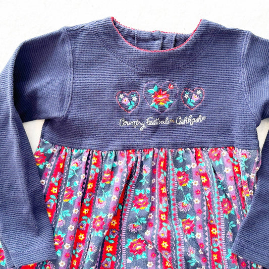Vintage OshKosh Floral Embroidered Collar Long Sleeve Layer Top: 4T