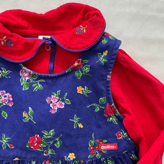 Vintage OshKosh Pink and Turquoise Floral Cord Girls Dress