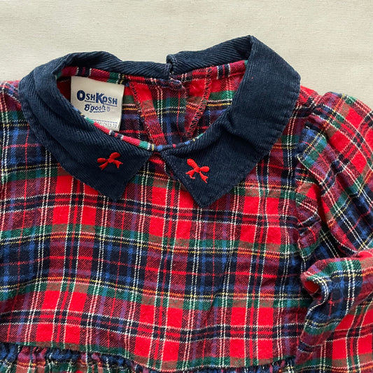 Vintage OshKosh Bow Collar Plaid Flannel Dress