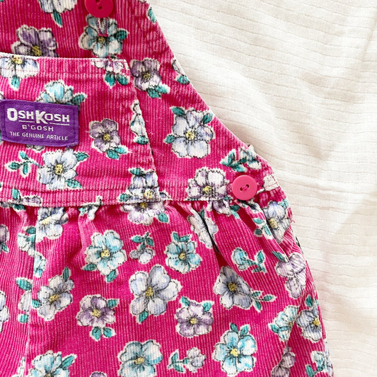 Vintage OshKosh Bright Pink Floral Cord Bubble Overalls