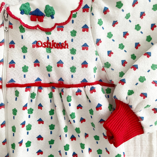 Vintage OshKosh Houses Print Sweatshirt Romper