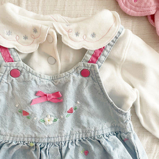 Vintage OshKosh Baby B’gosh Light Wash Embroidered Overalls Set