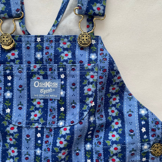 Vintage OshKosh Blue Striped Floral Print Shortalls