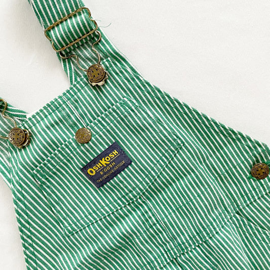 Vintage OshKosh Green + Navy Blue Striped Overalls