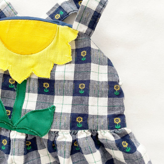 Vintage Good Lad Sunflower Checkered Baby Bubble Romper