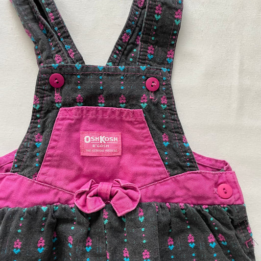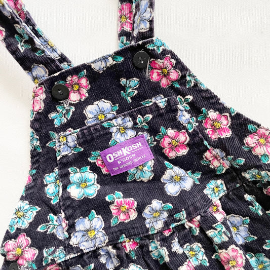 Vintage OshKosh Black Floral Cord Bubble Overalls