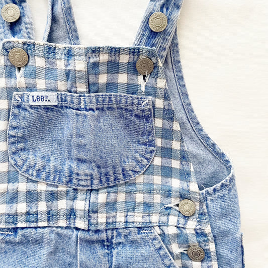 Vintage Lee Gingham Light Wash Toddler Shortall Overalls