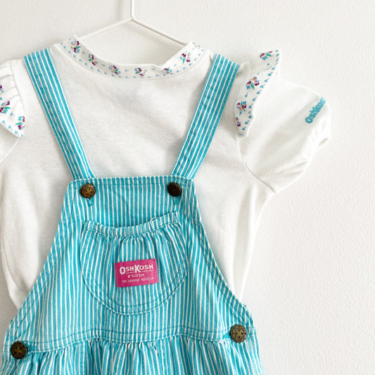 Vintage OshKosh Turquoise Stripe Girls Bubble Overalls Set