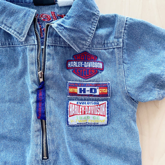Vintage Harley Davidson Denim Zip Toddler Romper