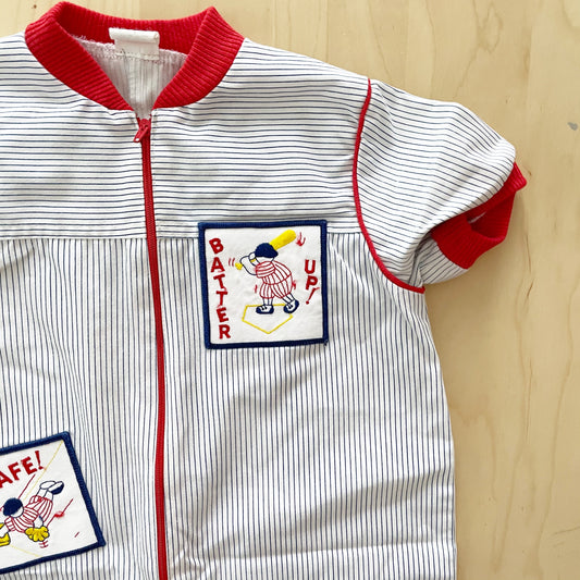 Vintage Cotton Zip Baseball Baby Romper