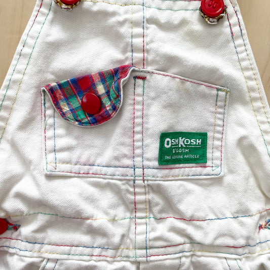 OshKosh White Primary Plaid Shortalls