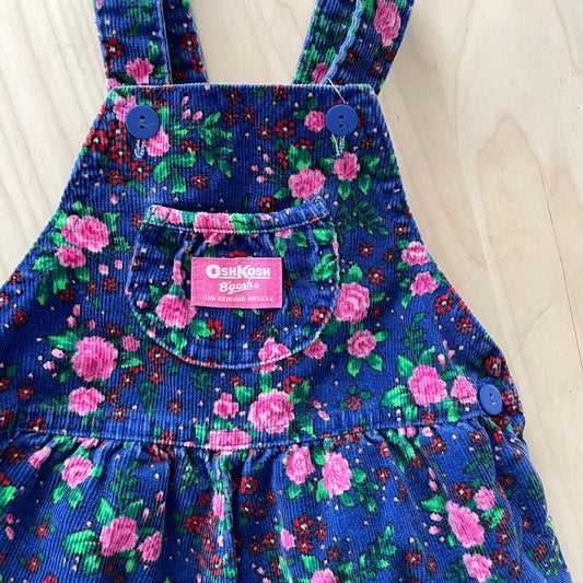 Vintage OshKosh Blue Rose Floral Cord Overalls