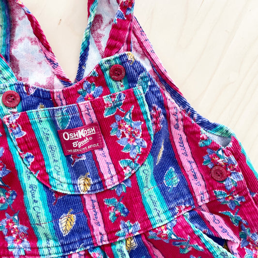 Vintage OshKosh Floral Leaves Striped Cord Overalls