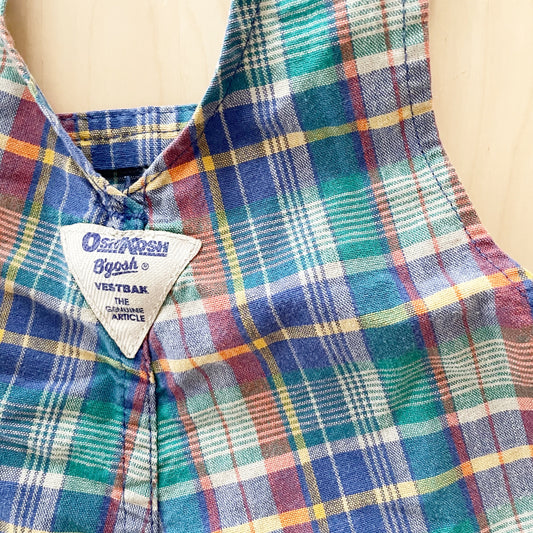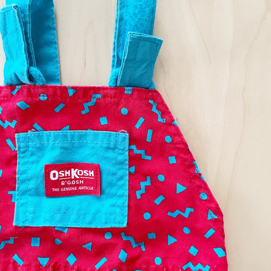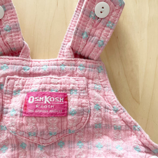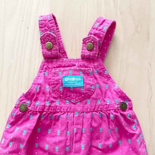 Vintage OshKosh Pink + Turquoise Woven Bow Back Baby Overalls