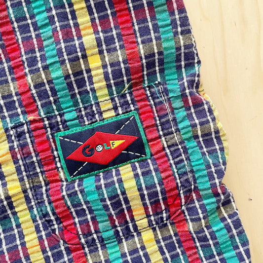 Vintage Gymboree Seersucker Plaid Golf Patch Shortalls