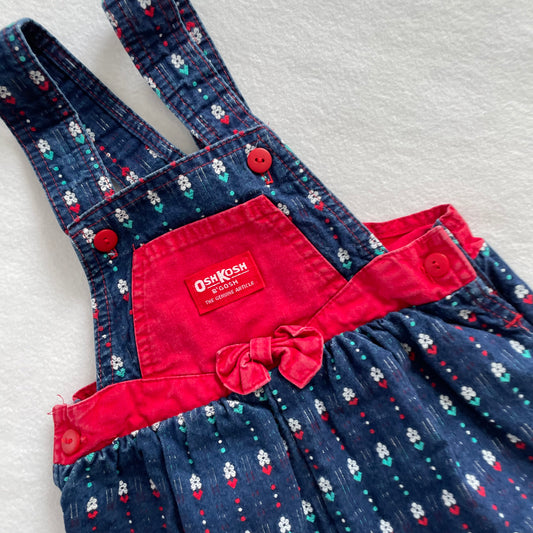 Vintage OshKosh Bow Front Flower Woven Overalls