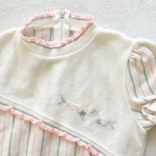 Vintage Polly Flinders Striped Polka Dot Romper: 18/24m