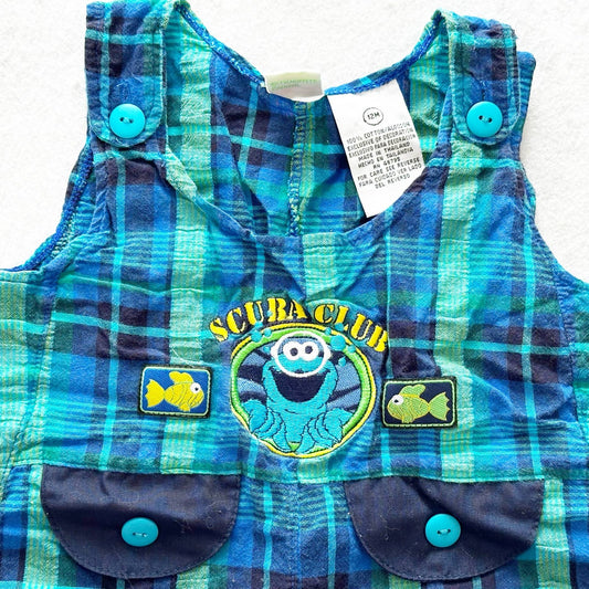 Vintage Sesame Street Cookie Monster Scuba Plaid Romper: 12m