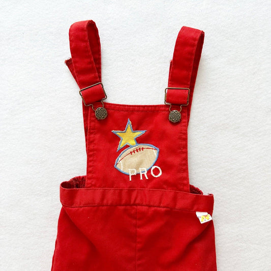 Vintage All Pro Football Appliqué Cotton Overalls: 24m