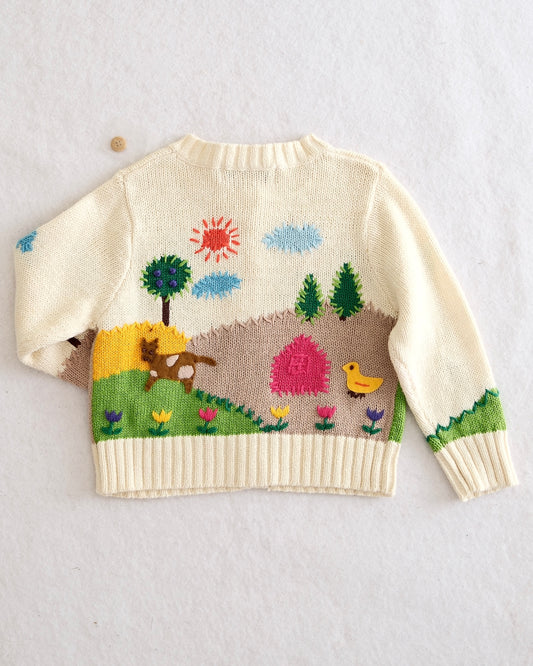 Vintage Copper Key Farm Scene Kids Cardigan Sweater