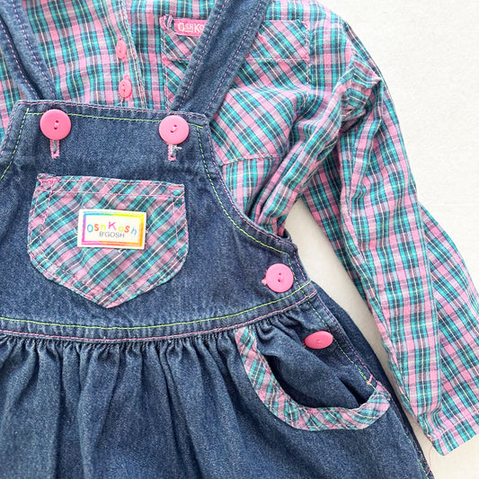 Vintage OshKosh Plaid Denim Skirtall Set: 4T/5T