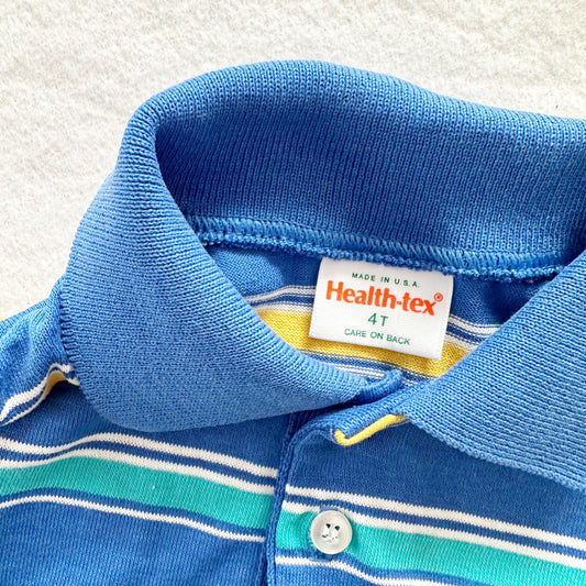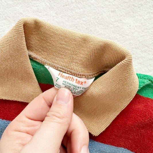 Vintage Healthtex Primary Striped Boys Long Sleeve Polo
