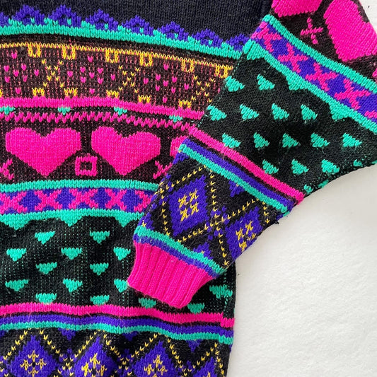 Vintage Hearts Fair Isle Mockneck Girls Sweater