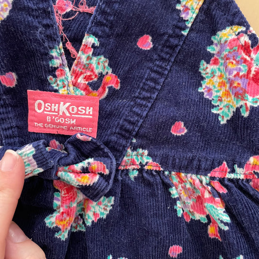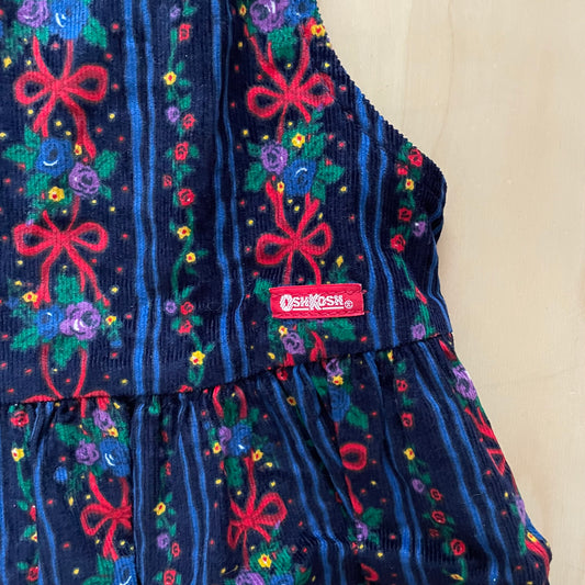 Vintage Deadstock OshKosh Black Floral Ribbon Cord Girls Dress