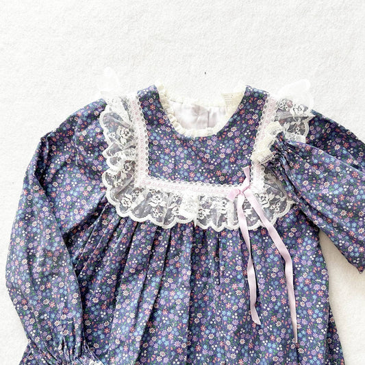 Vintage Boutique Becki Frog Appliqué Tie Shoulder Dress: 2T