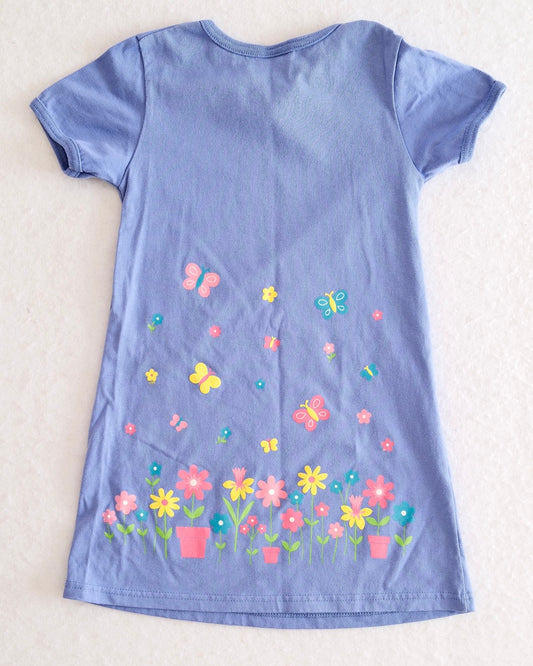 Vintage Healthtex Periwinkle Flowers and Butterflies T-Shirt Dress: 6y
