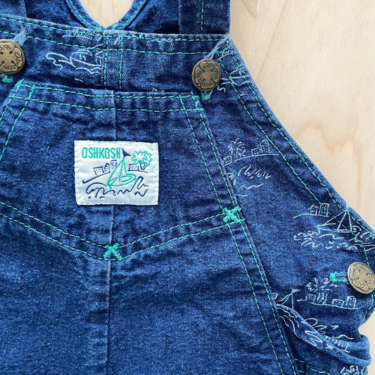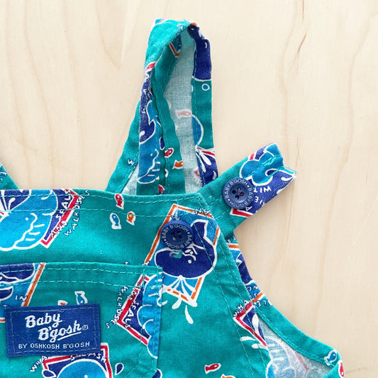 Vintage OshKosh Baby B’gosh Dinosaur Baseball Shortalls Overalls