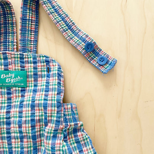 Vintage Baby B’gosh Seersucker Plaid Bubble Romper Overalls