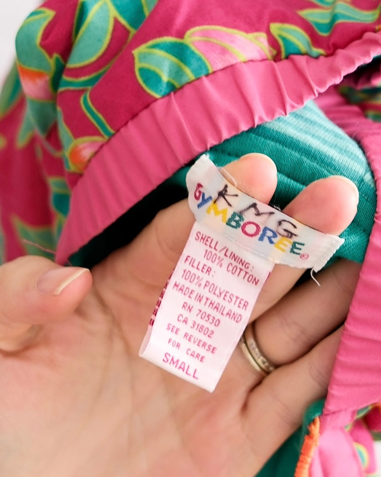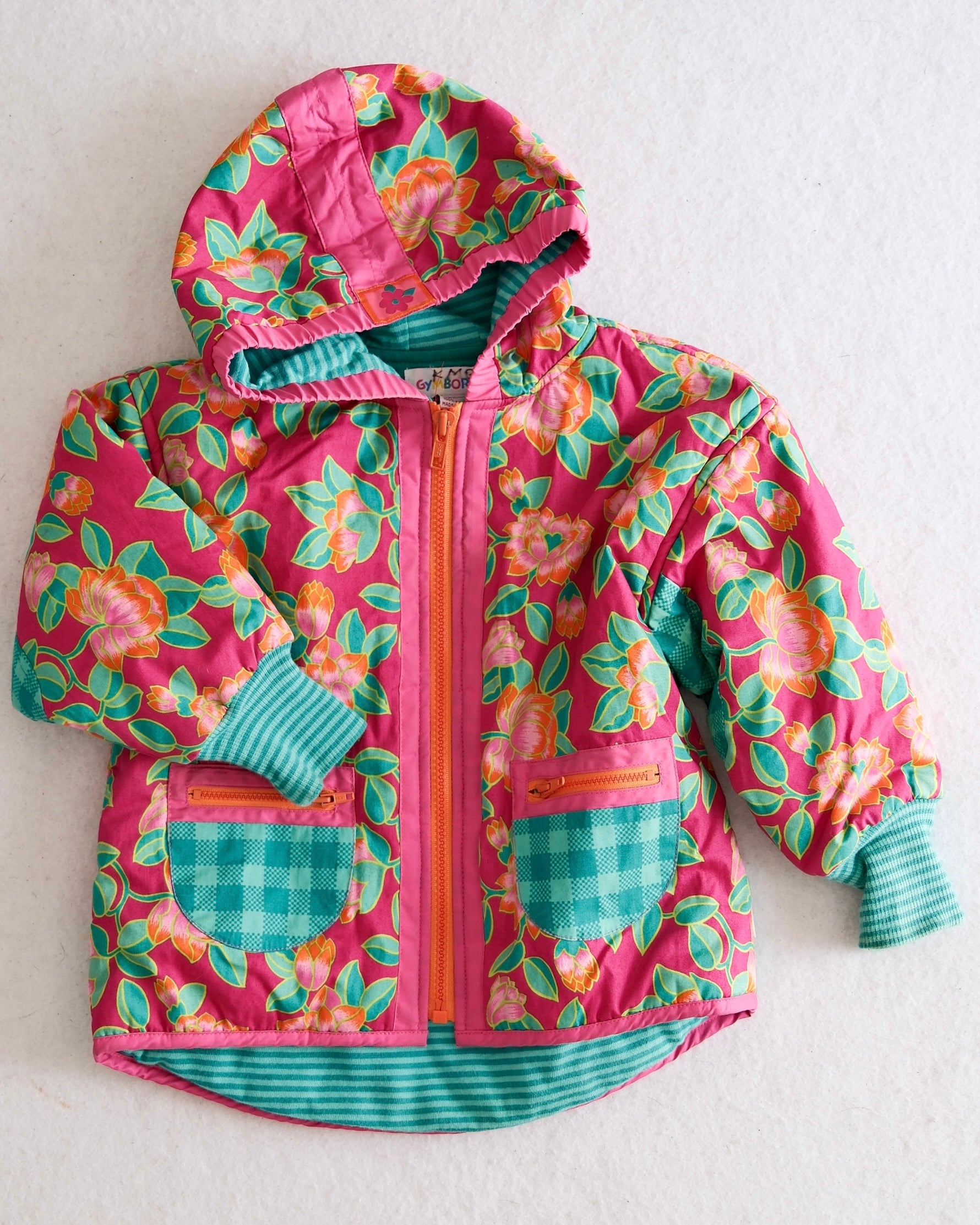 Vintage Gymboree floral hooded heavyweight jacket with bright pink + teal accents